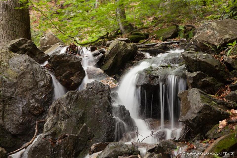 Výškový rozdíl 600 m. Výstup trvá cca. 3 ½ - 4 h. Trasa začíná u parkoviště na začátku vesnice Zwieseler Waldhaus a na Velký Falkenstein (1315 m) vede přes Schillerweg k Ahornriegel. Odtud se otevírá překrásný výhled směrem na jih k Velkému Roklanu (1453 m n.m.) – nejvyšší hoře Národního parku Bavorský les. Kousek za křižovatkou se stezkou „jasan“ křižuje cestu Malý Höllbach. Dále se pokračuje oblastí se zbytky pralesa okolo vodopádů.