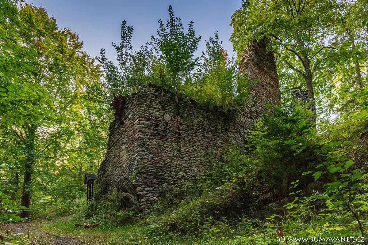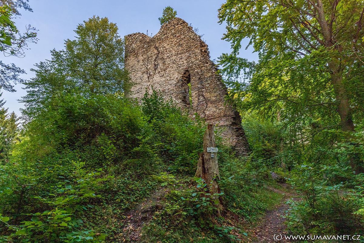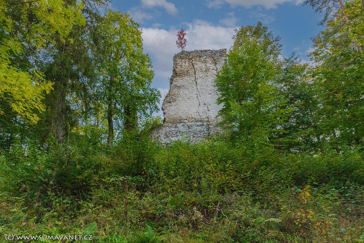 Z bývalého obranného hradu se zachovalo pouze několik trosek obytného stavení, věže a příkop. Na zdech je možno spatřit otvory po trámoví a v prvním poschodí uzoučký vchod pro jednotlivce, Zřícenina věže částečně dosahuje až do výšky čtvrtého podlaží, přičemž na severní a západní vnější straně se dochovaly zbytky původní omítky.