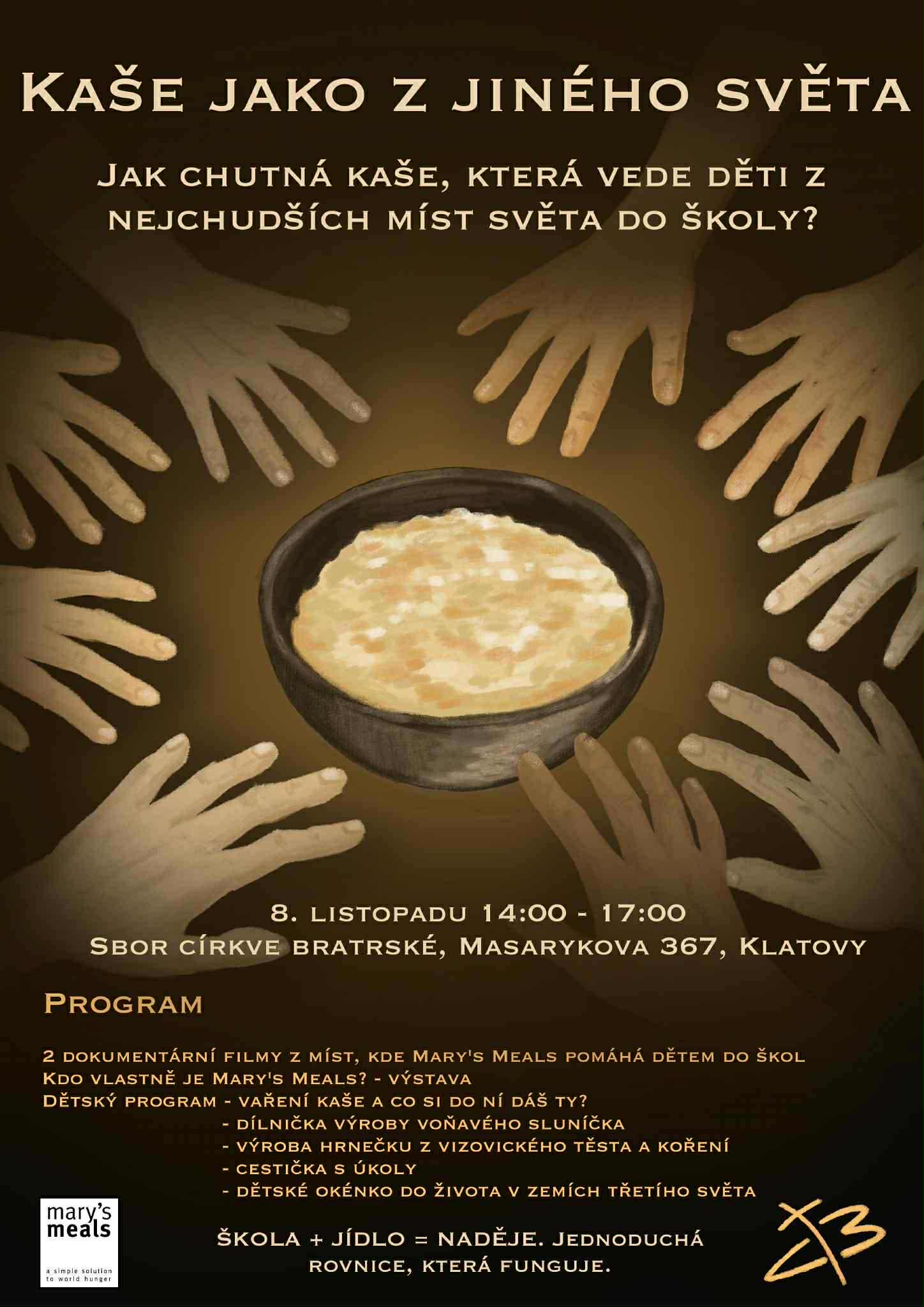 -promítání dokumentárních filmů, ochutnávka kaše, výstava fotek ze škol, kde Mary's meals pomáhá
